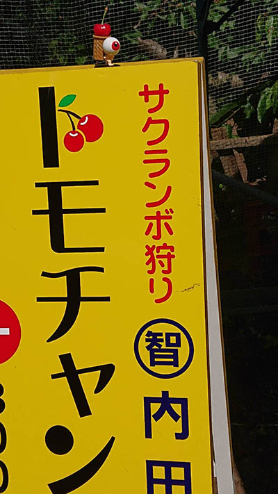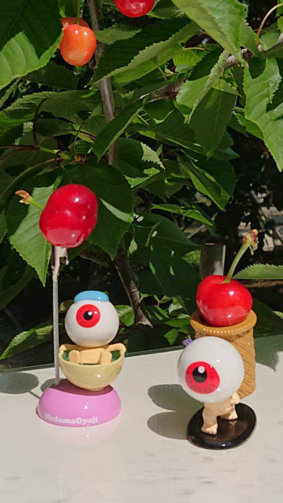 皆さんご存じでした?目玉おやじが赤く実ったさくらんぼを収穫しました。